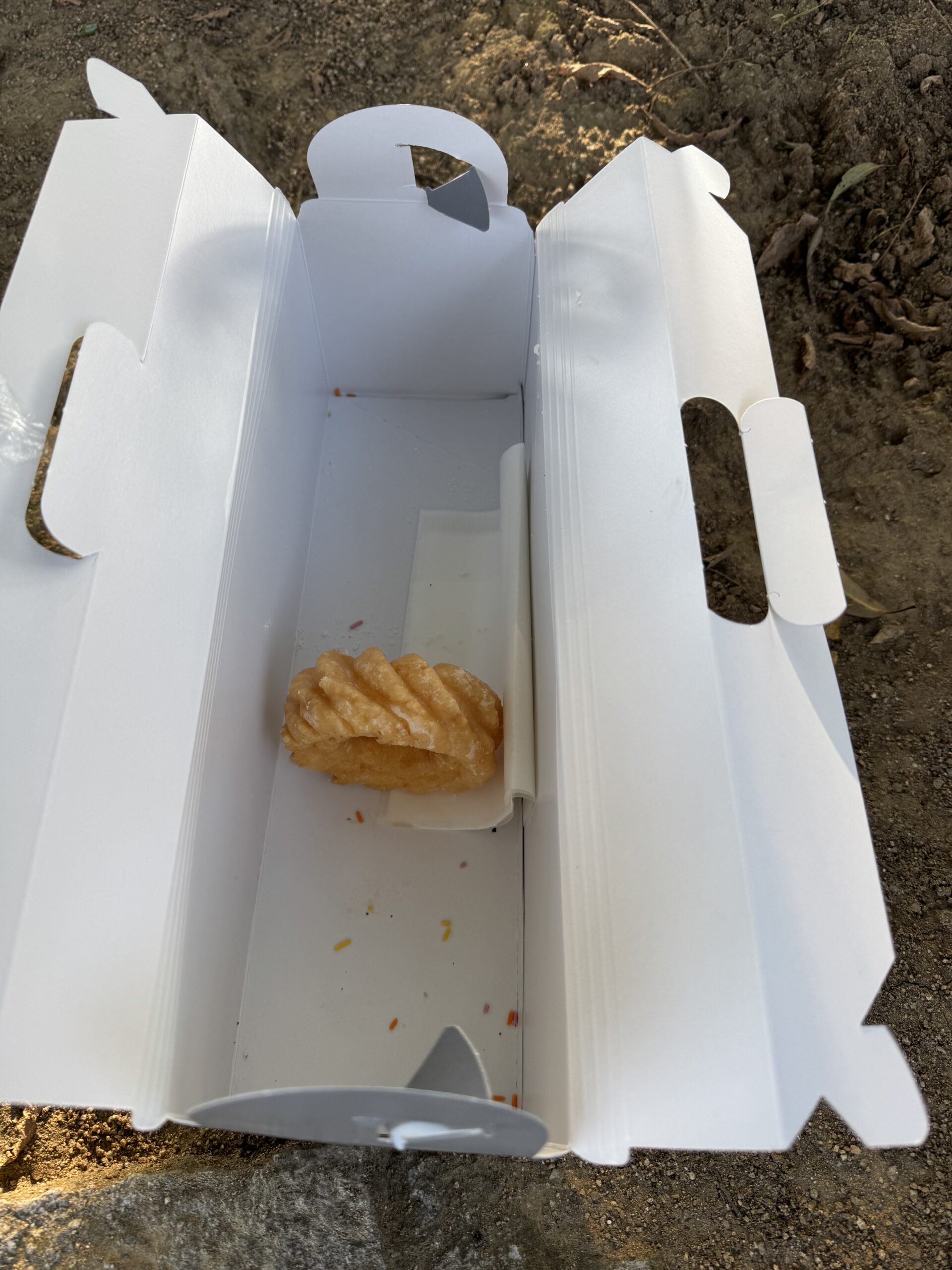 第五回[遠足 耳成山登山]令和7年度 2025.12.12 今日は遠足。とってもよく晴れてくれました。 普段は公開されていない秘密の仏様を拝見させていただきました。 おやつタイム。ミスタードーナツ♪ あと一つしか残ってない。